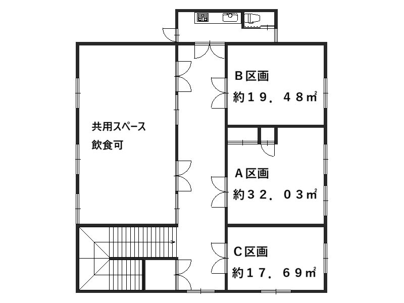 用途は、事務所または倉庫として3区画募集開始です。