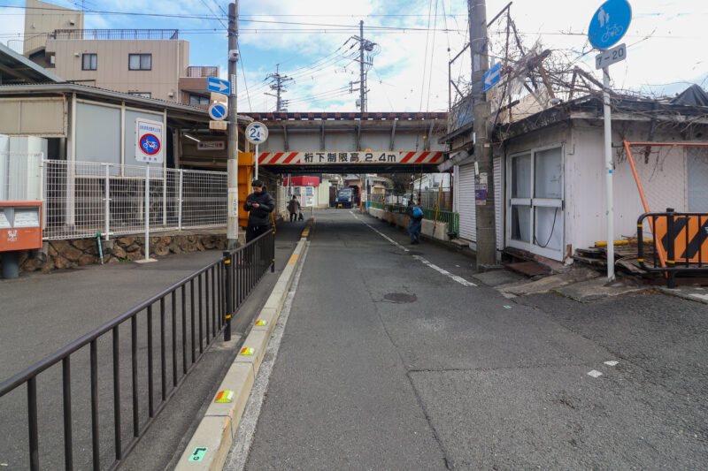 西口から出てしまった場合はこちらの高架をくぐりましょう。