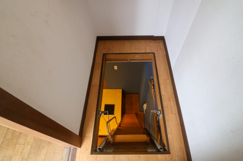 こちらは2階天井に設置された隠し階段を上から撮ったもの。