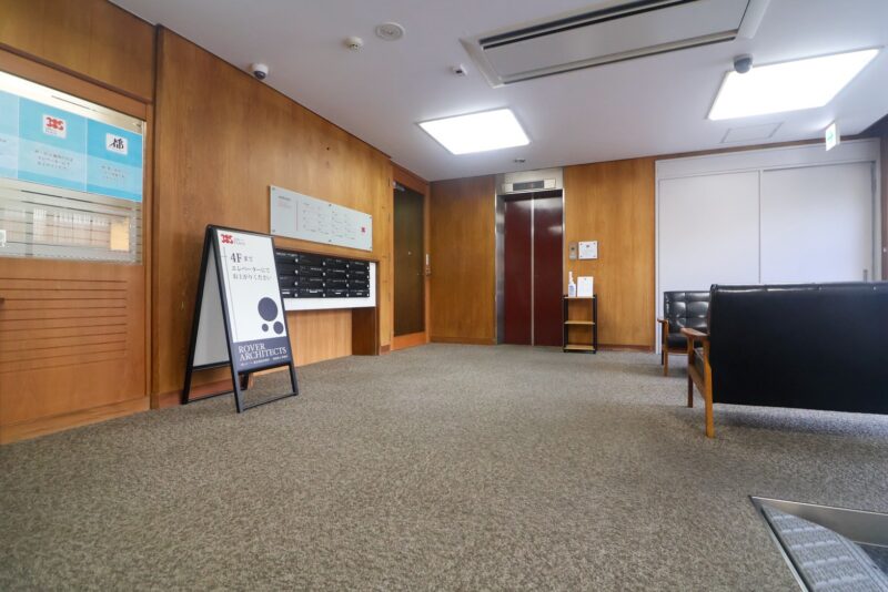 築54年の歴史も感じられつつ、今っぽい雰囲気も漂う1階ロビーの奥は、この建物を管理されている株式会社 都のオフィス。