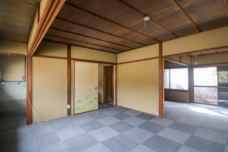 廊下と水周り以外は畳ですが、現在は全面にタイルカーペットが敷いてあります。